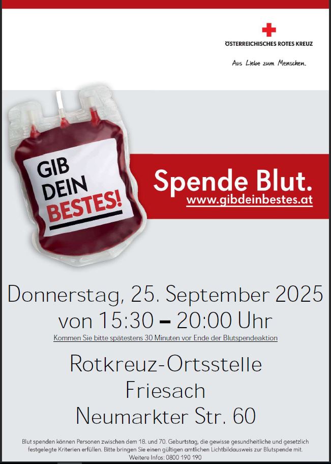 Ort: Rotkreuz-Ortsstelle Friesach, Neumarkter Straße 60; VA: Österreichisches Rotes Kreuz