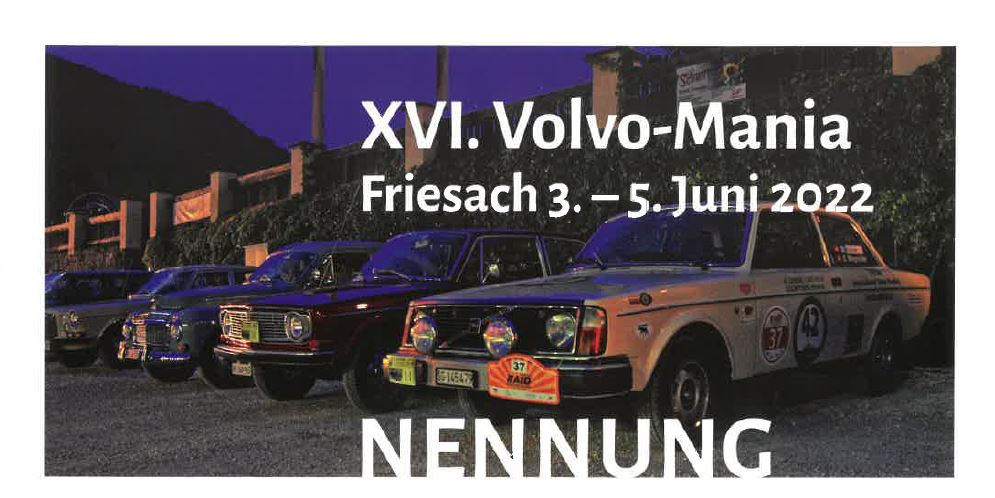 XVI. Volvo-Mania Friesach, Touristische Ausfahrt, 03.06.2022 bis 05.06.2022; Fürstenhof – Fürstenhofplatz 1, 9360 Friesach, VA: Volvo Club Österreich, Ansprechsperson: Hannes G. Unterberger, 0664/437 95 65, office@volvoclub.at