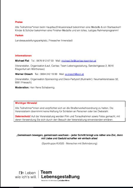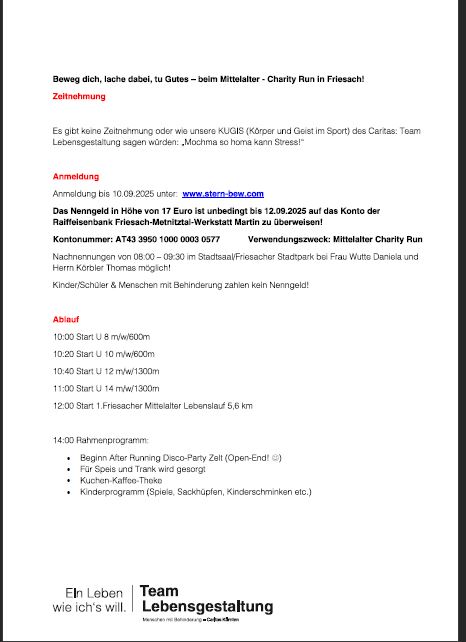 Start und Ziel im Friesacher Stadtpark; VA: Caritas Kärnten