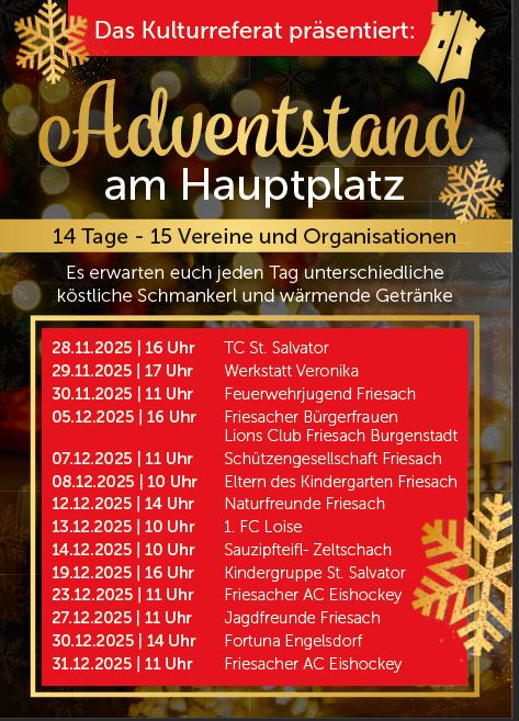Adventstand am Hauptplatz – Jagdfreunde Friesach